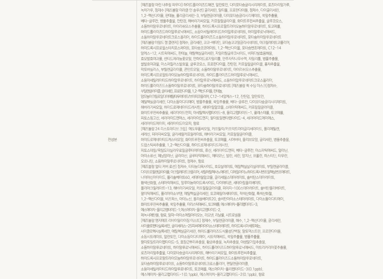 | 책임판매업자/제조업자 | (주)하이리빙 / (주)아우딘퓨쳐스, (주)코스메카코리아, (주)잉글우드랩코리아 |